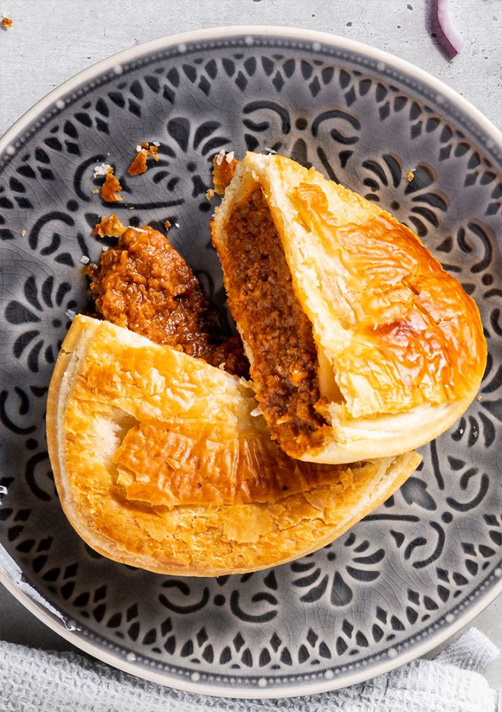 Een lekker pittige vulling van heerlijke satésaus en malse kipfilet waarin de beste kruiden en pinda’s zijn verwerkt. Echt een pie voor diegenen die van pit houden.