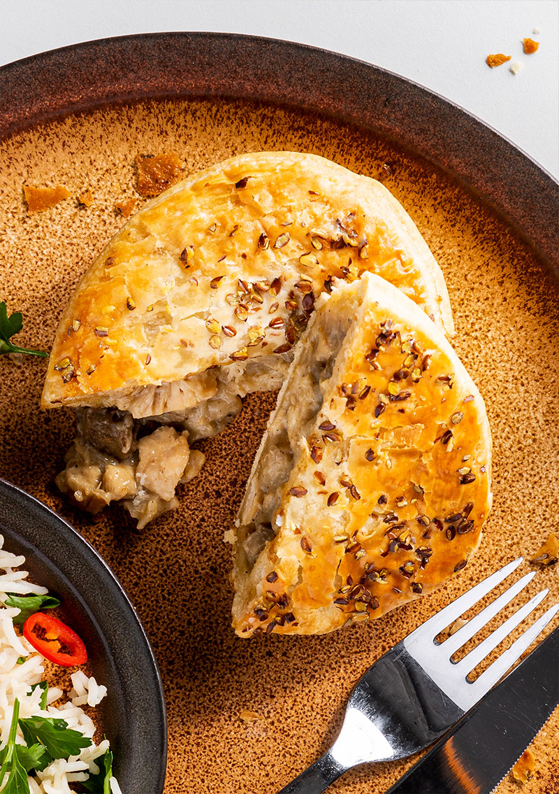 Een lekker pittige vulling van heerlijke satésaus en malse kipfilet waarin de beste kruiden en pinda’s zijn verwerkt. Echt een pie voor diegenen die van pit houden.